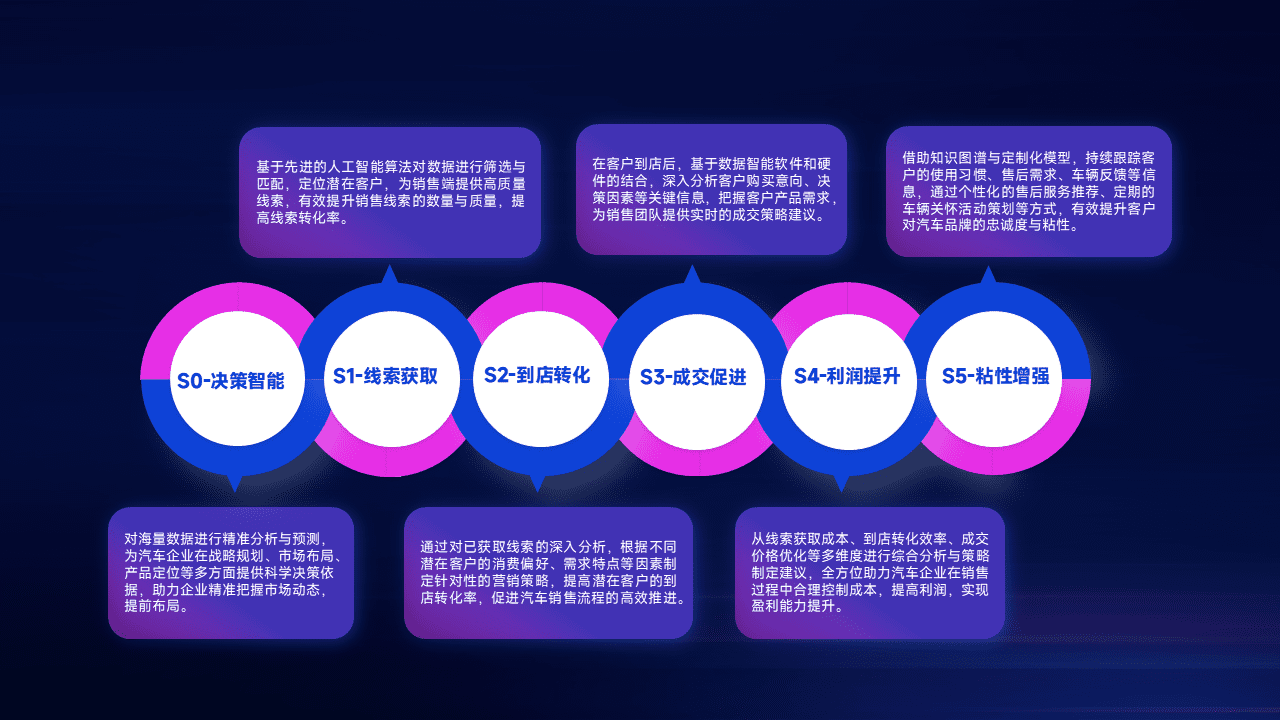 通过拓宽潜在客户来源、、、、优化线索分配并提高到店转化率,,以增强销售效率。。。同时,,,利用线索数据不断优化分析模型,,,,有效提升转化率,,扩大营销影响力。。。